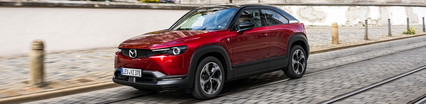 3 : Ein Privat-Leasing-Angebot (Kilometer-Leasing) der Mazda Finance – einem Service-Center der Santander Consumer Leasing GmbH (Leasinggeber), Santander-Platz 1, 41061 Mönchengladbach – für den Mazda MX-30 e-Skyactiv R-EV Exclusive-Line | 0,9l Benziner + Elektro 125 (170) kW (PS) bei 48 Monaten Laufzeit, monatlichen Leasingraten à 355,00 €, 10.000 km Laufleistung pro Jahr und einer Leasing-Sonderzahlung von 0,00 €. Bonität vorausgesetzt. Preise (brutto). Angebot ist gültig für Privatkunden und nicht mit anderen Nachlässen/Aktionen kombinierbar. Bei der gezeigten Abbildung handelt es sich um ein Beispielfoto eines Mazda MX-30 2025, die Ausstattungsmerkmale des abgebildeten Fahrzeuges sind nicht Bestandteil des Angebotes. Leasingangebot jeweils zzgl. 990,00 € Überführungskosten, die von uns als auslieferndem Händler getrennt abgerechnet werden, und zzgl. Zulassungskosten.